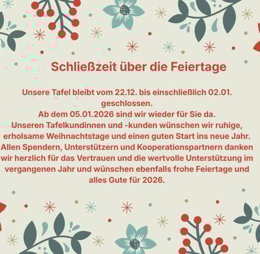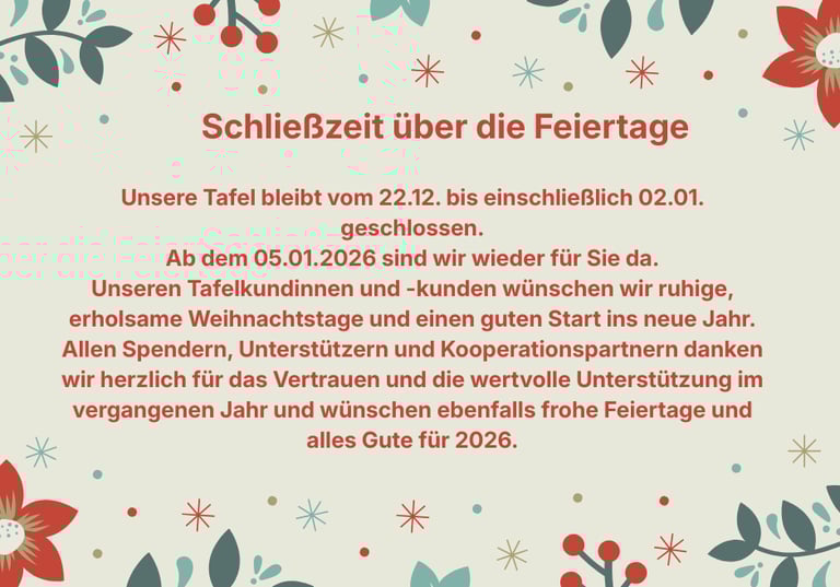 Wir helfen Ihnen trotzdem – einmalig. Bitte bringen Sie beim nächsten Mal Ihren Tafelausweis mit.